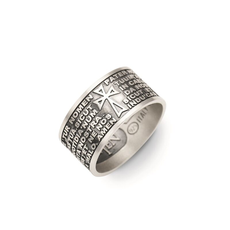 Anillo con la oración Padre Nuestro grabada en latín de Plata 925